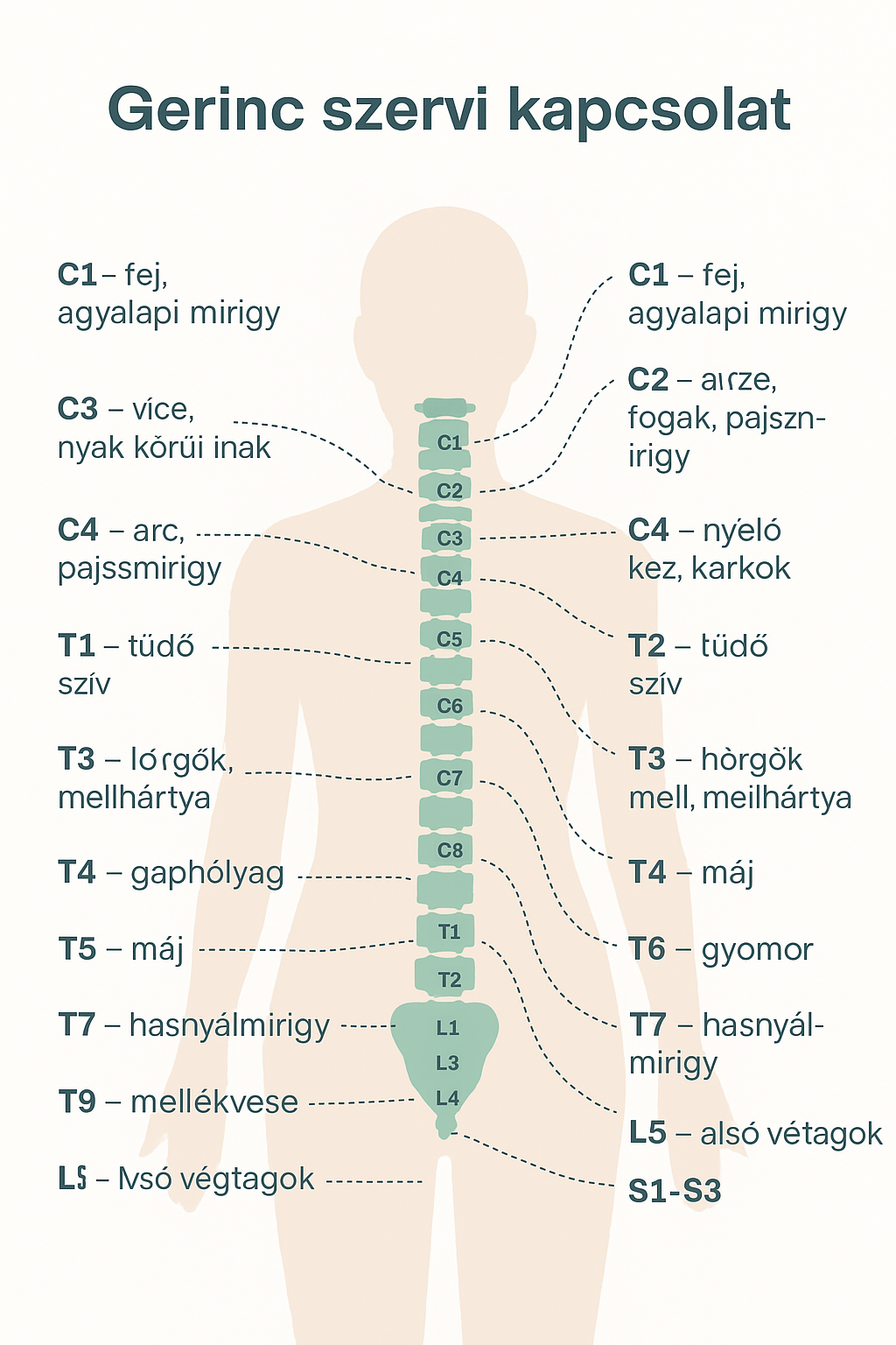 Ha egy ideg valamilyen okból (pl. izomfeszülés, csigolyaelmozdulás) nyomás alá kerül, az nemcsak fájdalmat, hanem az adott szerv működésének zavarát is okozhatja. Ezért olyan fontos a gerinc és az izmok egészsége, hiszen a test minden pontjára kihat.