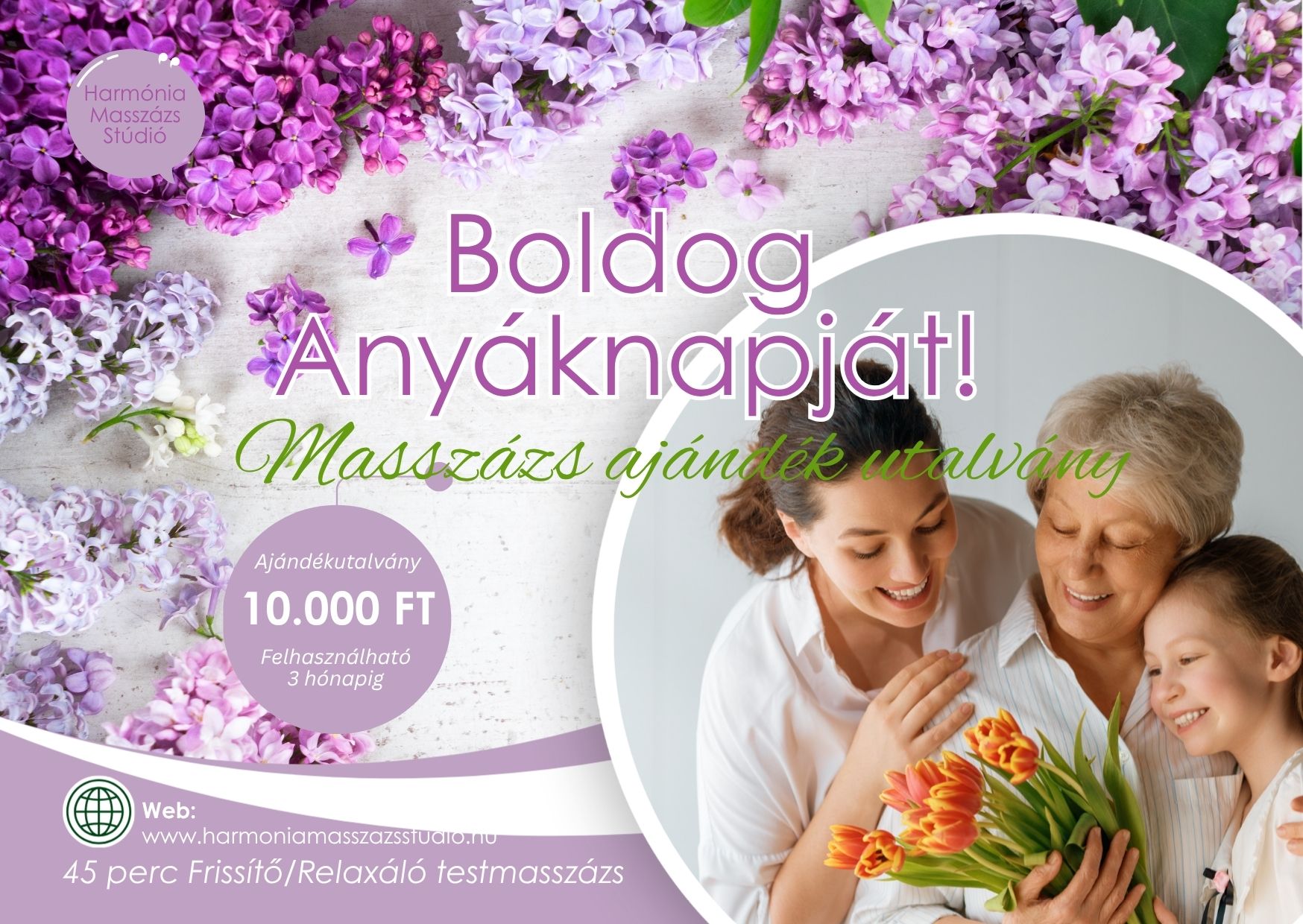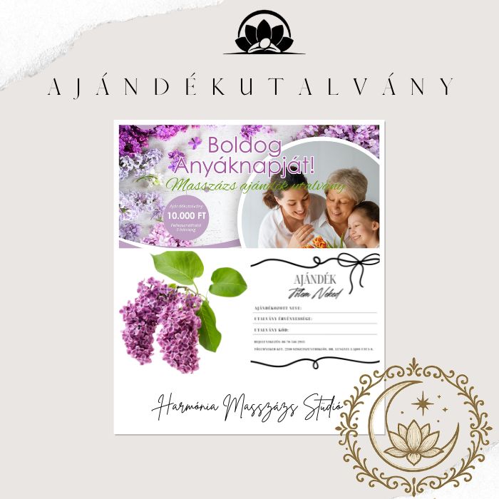 A Harmónia Masszázs Stúdió Anyák napi Ajándékutalványa különleges élményt ad — egy nyugodt, békés időt, amikor végre megállhat, ellazulhat és feltöltődhet.