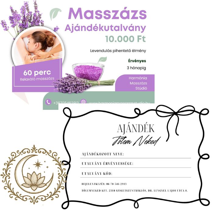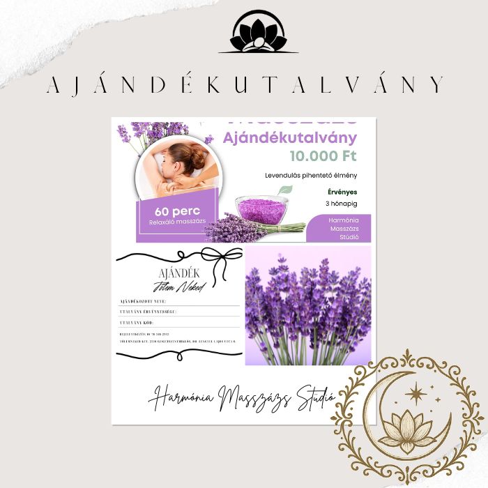 Kedves, mégis igazán igényes ajándékot keresel? A Levendula Masszázs Ajándékutalvány tökéletes választás! Egy pihentető masszázs mindig örömet okoz, és tökéletes figyelmesség azoknak, akiket szeretnél meglepni ezen a különleges napon. Könnyed, szeretetteljes megoldás, amely jól esik a testnek és a léleknek is.