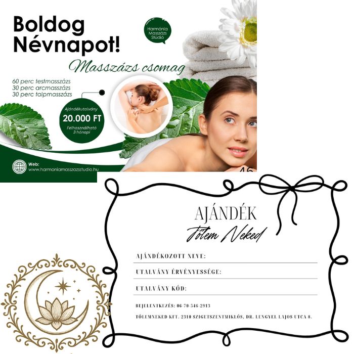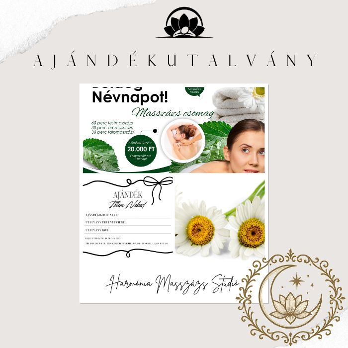 Kedves, mégis igazán igényes névnapi ajándék? A Névnapi Ajándékutalvány tökéletes választás! Egy pihentető masszázs mindig örömet okoz, és tökéletes figyelmesség azoknak, akiket szeretnél meglepni ezen a különleges napon. Könnyed, szeretetteljes megoldás, amely jól esik a testnek és a léleknek is.