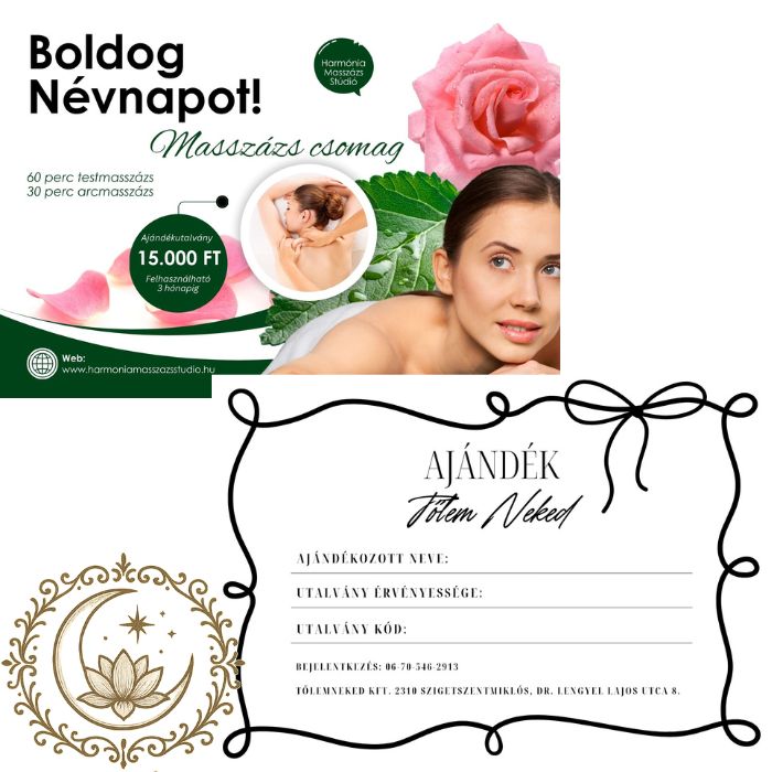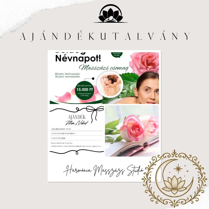 Kedves, mégis igazán igényes névnapi ajándék? A Névnapi Ajándékutalvány tökéletes választás! Egy pihentető masszázs mindig örömet okoz, és tökéletes figyelmesség azoknak, akiket szeretnél meglepni ezen a különleges napon. Könnyed, szeretetteljes megoldás, amely jól esik a testnek és a léleknek is.