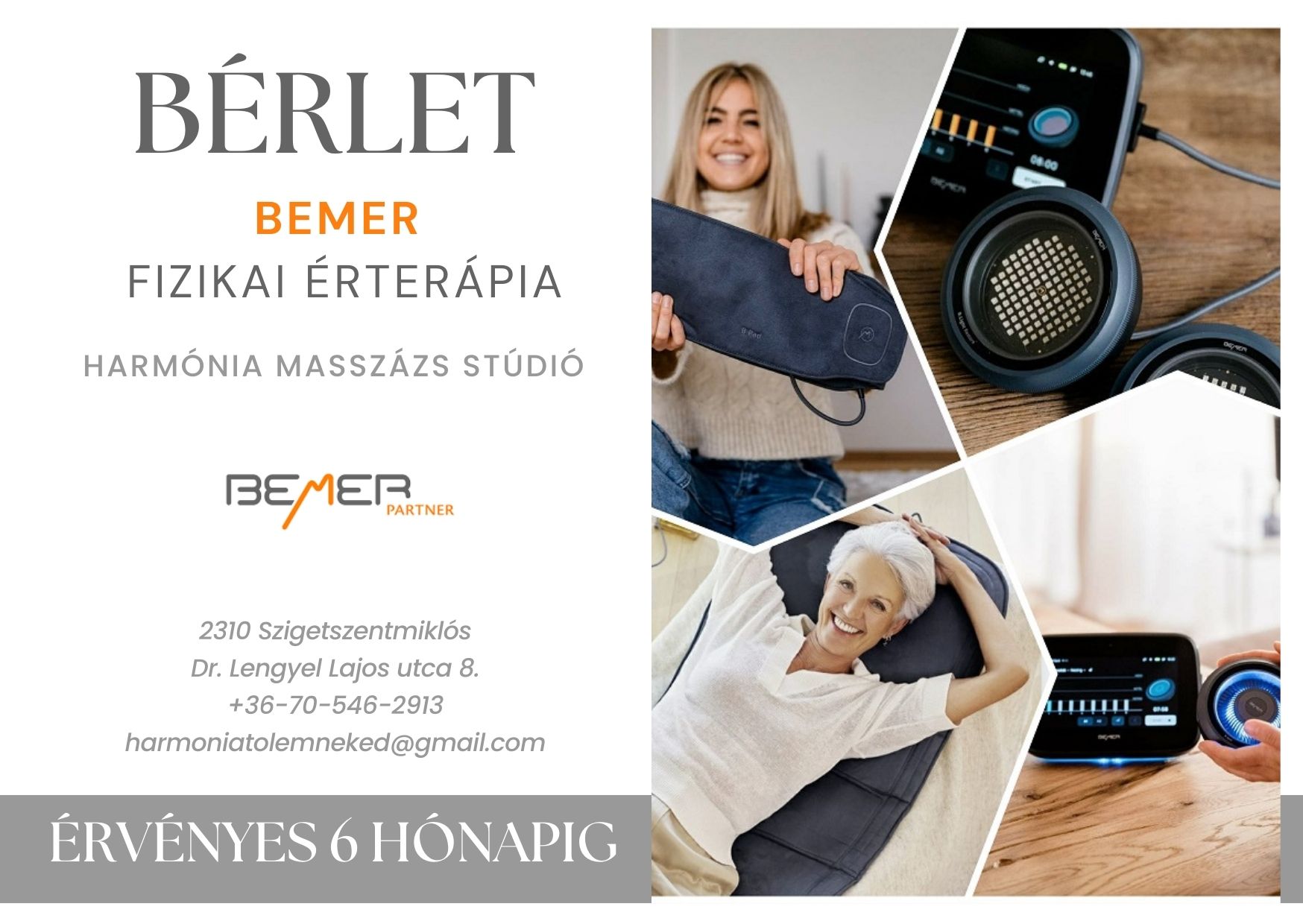 A BEMER terápia speciális, pulzáló elektromágneses mező segítségével támogatja a mikrokeringést, ezáltal hozzájárul a sejtek jobb oxigén- és tápanyagellátásához. Gyengéd, mégis hatékony kiegészítő kezelés, amely jól beilleszthető a mindennapokba.