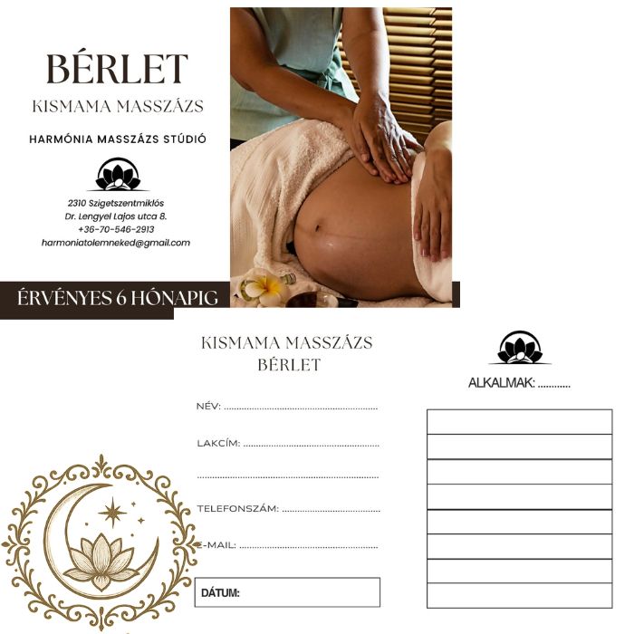 A kismama masszázs gyengéd, biztonságos kezelés, amely kifejezetten a várandósság idején jelentkező testi feszültségek enyhítésére szolgál. Segít a hát-, derék- és lábfeszülések oldásában, támogatja a keringést és hozzájárul a kismama testi-lelki megnyugvásához.
