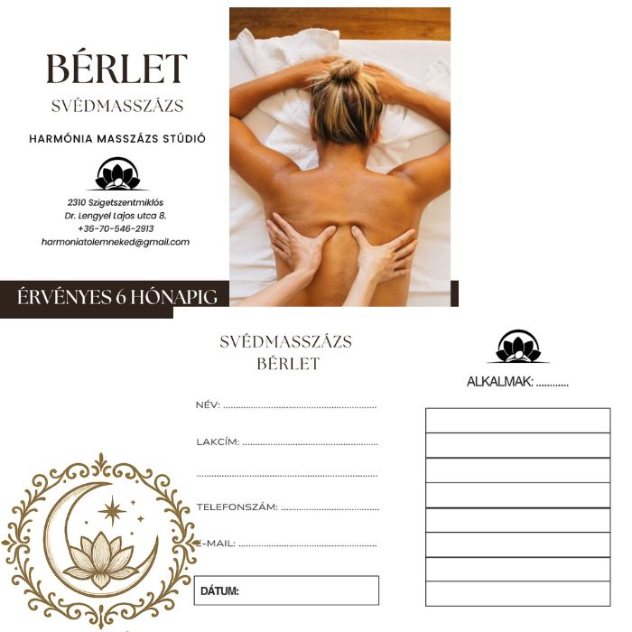 Bérlet opciók – 60 perces svéd/relax masszázs: